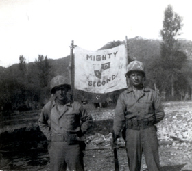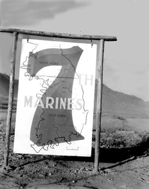![]() | A sign with the "7" superimposed on a map of Korea designated th 7th Marines Command Post. |