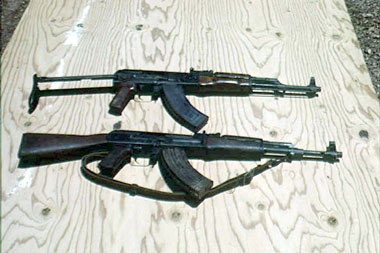 ![]() | Two models of a Soviet AK-47 Assault Rifle, one with a stock that folded, both could be fired fully automatic. |
