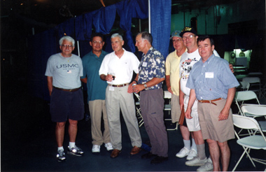 ![]() | [Left to right] Robert Loggins, Sheldon Carter, Allen Weh, Bill Swartz, Wirdon, unknown and John Easton on the right. |