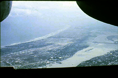 ![]() | Aerial view of the Han River and the Nguyen Hoang Bridge in DaNang. Top left of the picture is the South China Sea. |