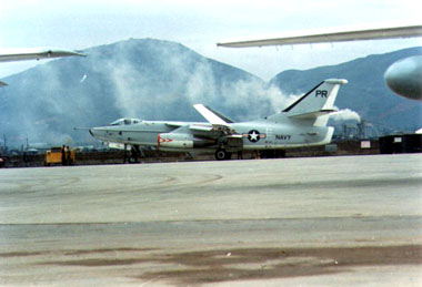 ![]() | A US Navy Skywarrior on the airbase, an aircraft that was a tactical bomber. Later used as aerial refueling tanker and as a reconnaissance aircraft. |