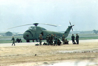 ![]() | Marines preparing to board a Hu-34 which will take them to their mission. The Marine Helicopters were study beasts and a lot of punishment. could take |