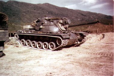 ![]() | A Marine Corps M48A1 Tank parked in the Battalion area at Qui Nhon. |