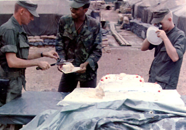 ![]() | Bob cutting the cake and "serving" the troops during a festive time for all Marines. Yes, this is cake, and this is VietNam 10 November 1968. |