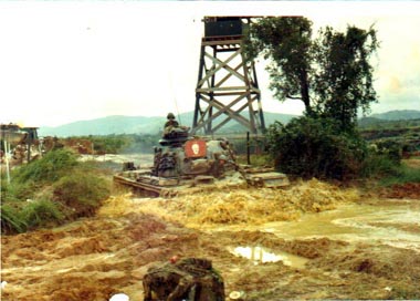 ![]() | The perimeter at FSB Ross during the monsoon, M48A3 tank in a defensive position near a watchtower. |