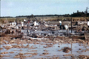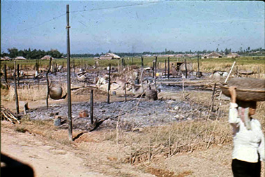 ![]() | It was evedent that the attack devastated the hamlet and many of the villagers hootches. |