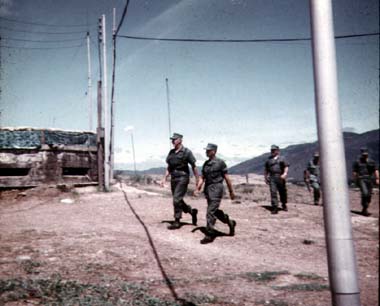 ![]() | BGen. Foster LaHue acting CG 1st MarDiv with LtCol. Counselman behind himn arriving at the 3d Battalion 7th Marines Cp for an awards ceremony. |