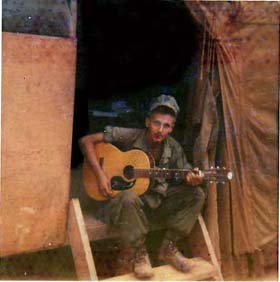 ![]() | Larry Slupski, Weapons Platoon, Golf Company enjoying some "down time" with his guitar. |