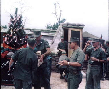 ![]() | CO Capt Karl Ripplemeier, December 24th or 25th handing out Red Cross and Christmas packages to Charley Marines in front of the COC. Anyone recognize themselves ? |