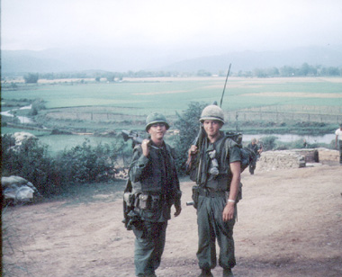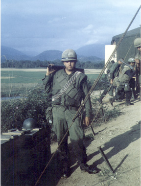 ![]() | Picture of myself (Al Granados) with a view of Happy Valley towards Khuong My (2), late December or January 68. In the rear Davis with an M-60, William Only with an M-14, and Liskey or "Lurch" without a helmet. |