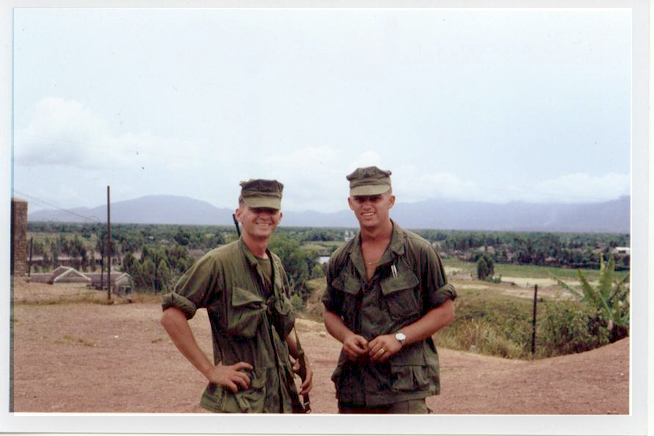 ![]() | Heavy rains on Operation Foster would not hinder their mission on this search and clear operation. Radioman LCpl Ray Reilley later KIA on Operation SUSSEX BAY 29 August 1968 and SSgt Al Keeton with his back to the photographer. |