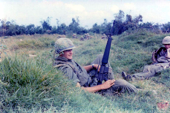 Lima 2 Right Guide Sgt. Callaway and SSgt Keeton taking a break in the Tall Grass of Vietnam.