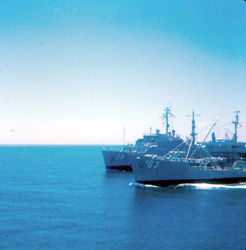 ![]() | At sea the LSD-28 USS Thomaston along side the AO-63 USS Chipola being replenished with vital fuel. |