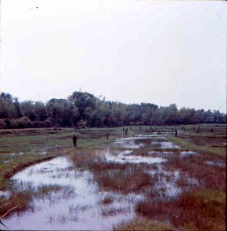 ![]() | Fox Company Marines making their way through flooded rice paddies towards a treeline. |