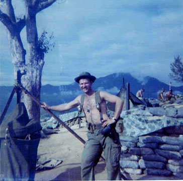 ![]() | "Pop's" Lashley near a Lister bag with precious water on a mountain top out post. |