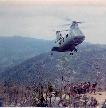![]() | A CH-46 D arriving to the Marines waiting for a resupply of food and equipment. |