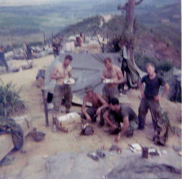 ![]() | Eager Fox Marines eating "steak" in the field which was flown it to them. |