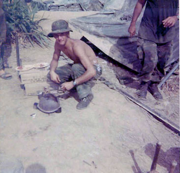 ![]() | Frank Keiper using his helment for a good cause..."grill top" for his steak. |