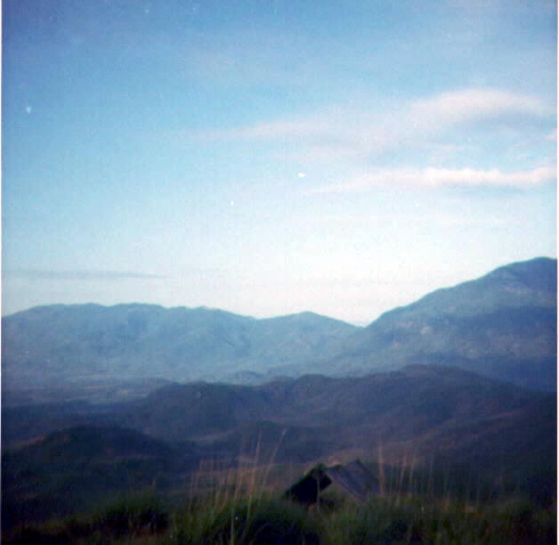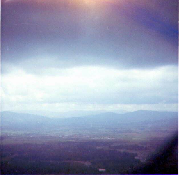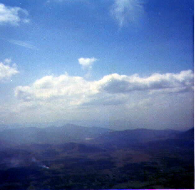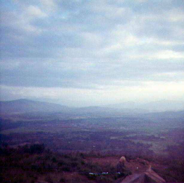 ![]() | We are sat up on the small hills, that you can see looking North from Ross. This photo is looking West, You can see 953 on the right, that cut to the left before the mountains start up again is going into Antenna Valley, If you zoom in the second peak fronm the cut left, you we see a brown spot, "THAT'S LZ Ryder". Dane Williams. |