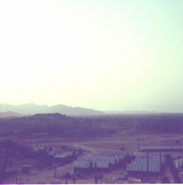 Aerial view, west, northwest of LZ Baldy, February 1970.
