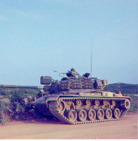 A Tank positioned on the road near FSB Ross, awaiting the repair on a tank behind it.
