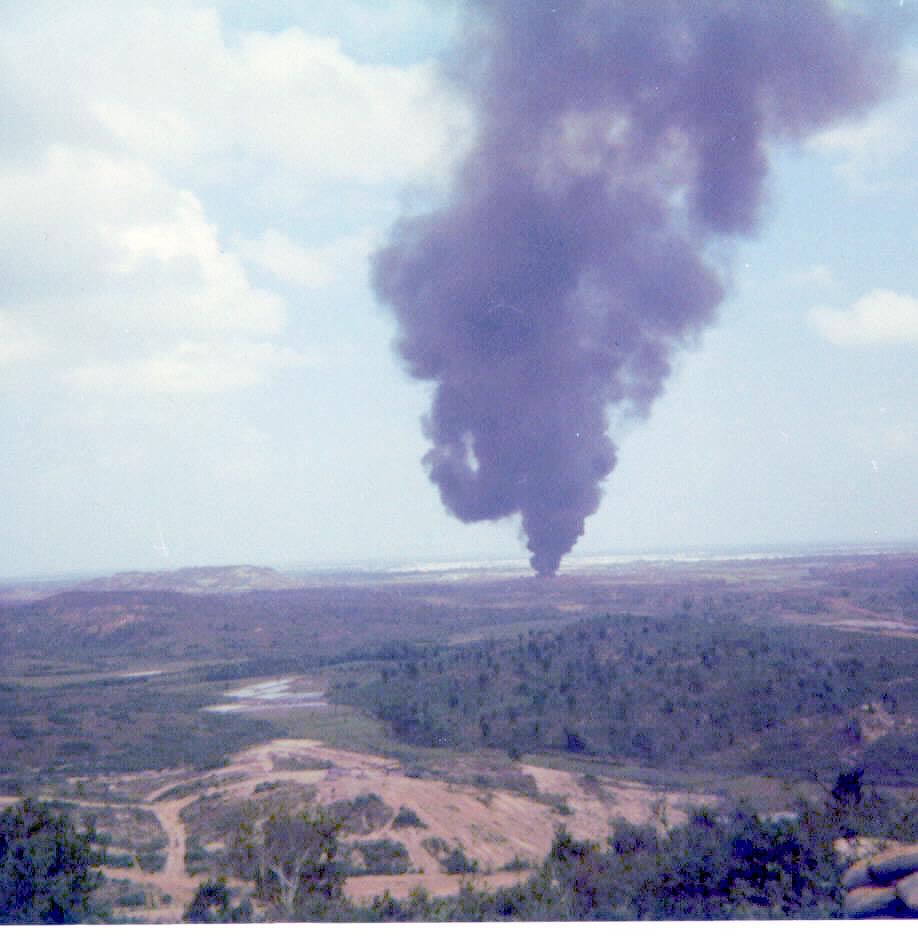 ![]() | Smoke rising, LZ Baldy, view east from the rock crusher area. |