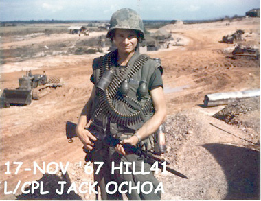 ![]() | LCpl Jack Ochoa, on Hill 41, 17 Nov. 1967 ready to participate in the "hunt" for Charlie and earn his wages. |