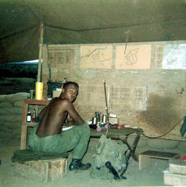 ![]() | "Jones" in the COC bunker located near the Watchtower on Hill 25. Note the enlarged contour drawing of Hill 25 on the wall. |