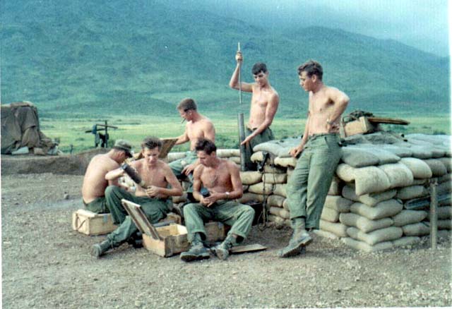 ![]() | 60mm morter crew cleaning their "piss tubes" near one of the mortar bunkers located on the hill.