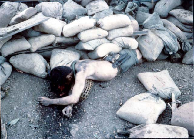 ![]() | The enemy was litterly "on top" of the Marines, many were found dead amoung the destroyed bunkers. |