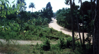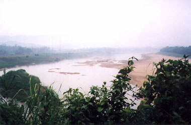 ![]() | View at the bottom of the hill facing east towards Dai Loc, near the hootch to the right is the entry point to the Song Vu Gia. |