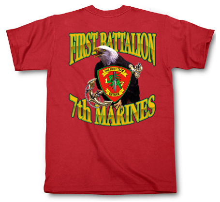 Red, embroidered 1st Battalion, 7th Marines and Crest.