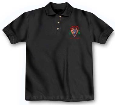 100% cotton pre-shrunk heavy weight jersey. (5.7 oz) Black with a fashion stripe collar and embroidered Fox crest. These shirts are available in the following sizes: LRG, XL and XXL.