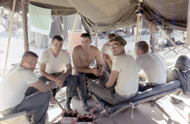Is drinking beer the only thing we did in Okinawa? [Left to right] Background Benry R Brink, ______, front, Manuel N Reyna, Russell A. Latona, Keith L Rue , _________, and ____________. |