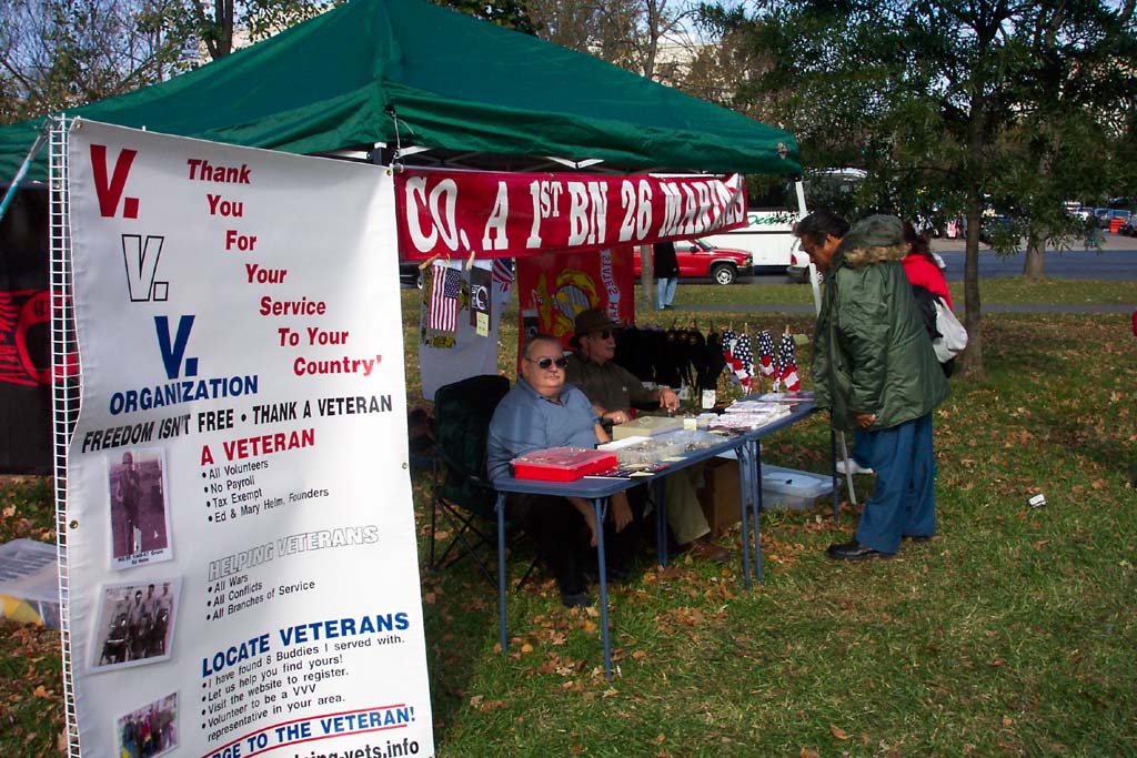 Ed and Vern at the VVV kiosk displaying a variety of free gifts availabe for a donation to the Veterans non profit organization.