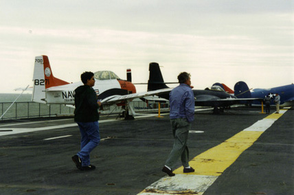 A King Ranch Cowboy with MaryAlice and Joseph Correa; Strolling across the snow swept carrier deck