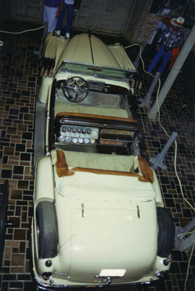 A convertable roadster outfitted for deer hunting, and celebrating |