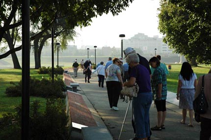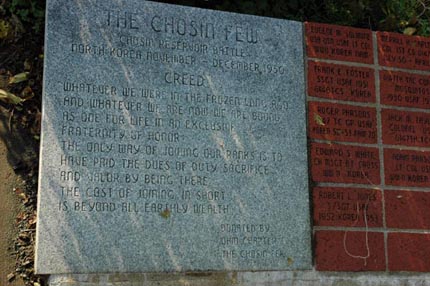 Getting ready for lunch; Chosin Few Memorial Plaque