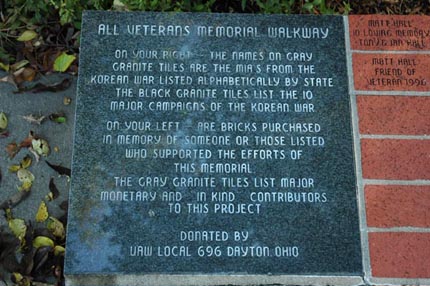 Memorial Walkway; Dayton Professional Baseball Team Park