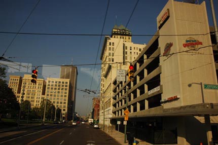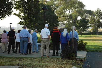 Downtown Dayton; Dog Seven Reunioners getting ready for a bus trip
