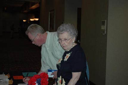 Ann Humphreys and Son, checking in; Hospitality Room gathering
