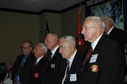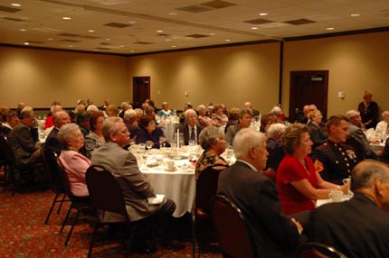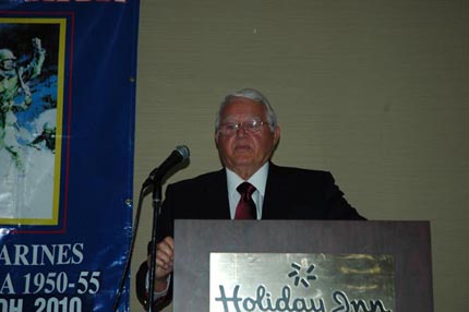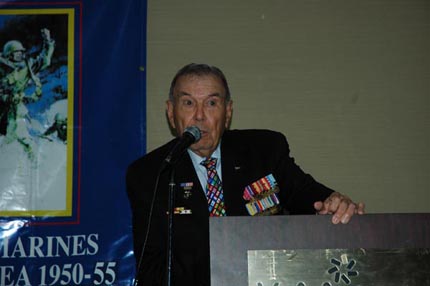 Member Dr Gonzalo Garza addressing the gathering; Guest Speaker and New Honorary Member, Captain Jason M. Schrage, USMC. |