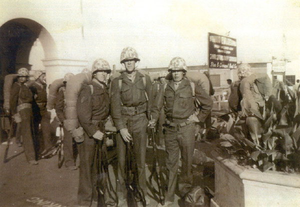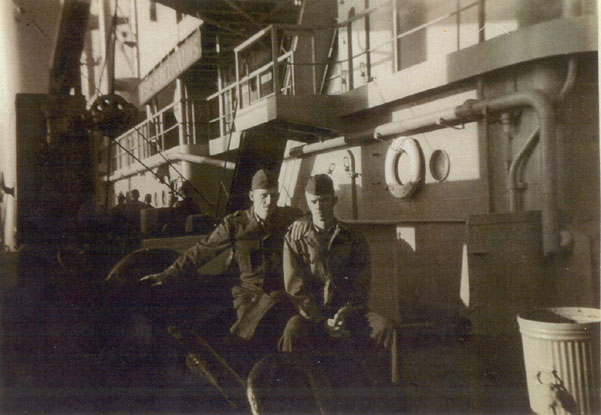 The following photos were taken of my father just before and just after he boarded the USNS Collins, 16 November 1950. He was Killed in Action, with D Company, 7th Marines, on April 10, 1951. He was awarded the Silver Star Medal for his actions on that day. |