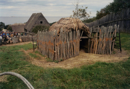 Harvesting Cranberries; Historic Plimouth Villiage Scene