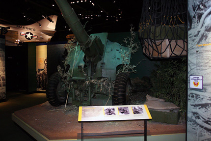 A Helicopter Scene, Vietnam Era; An Artillary Piece, probably a 155mm Howitzer