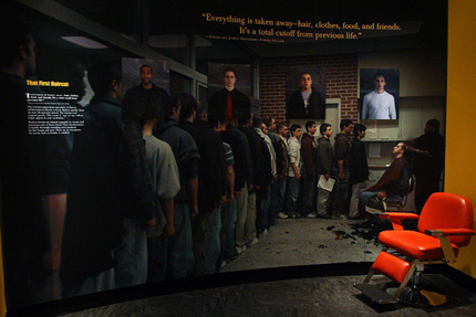 Boot Camp Scene, Day 1, Haircuts; Some of our folks viewing the Museum displays