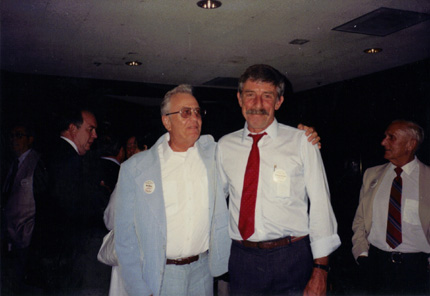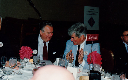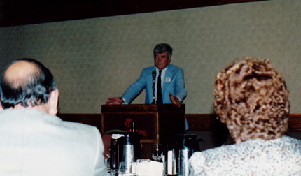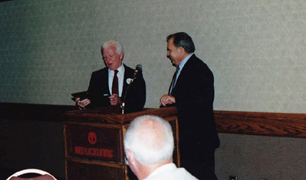 Paul Mullaney and Brendan O'Donnell at the podium; Guest Speaker Paul "Pete" McCloskey addressing the group