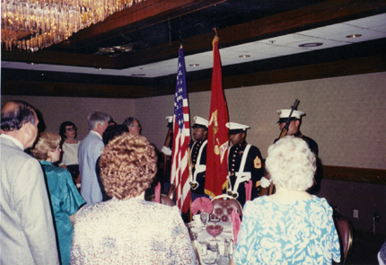 Garrs and Tom Cassis, dapper Lee Wimpee in the background; Our Color Guard prepares to post the Colors.