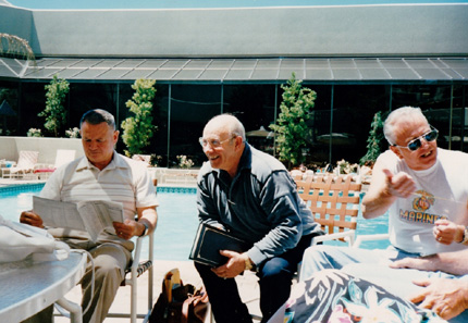 Photog Tom Cassis and Juge Paul Mullaney; Warren Gerweck, Tom Cassis and Ole Olson enjoying some poolside sunshine