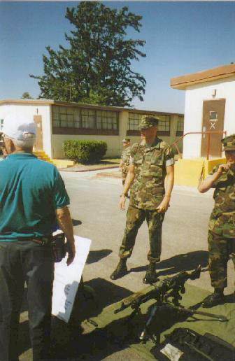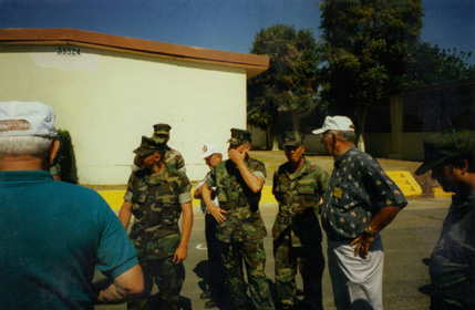 29 Palms Marines of 2/7 putting on a weapons demonstration for Dog Seven Marines and family members; Official of the 1st Marine Division Assn presenting the Memorial Stone to CG of the 1st Marine Division, Division HQ, Camp Pendleton